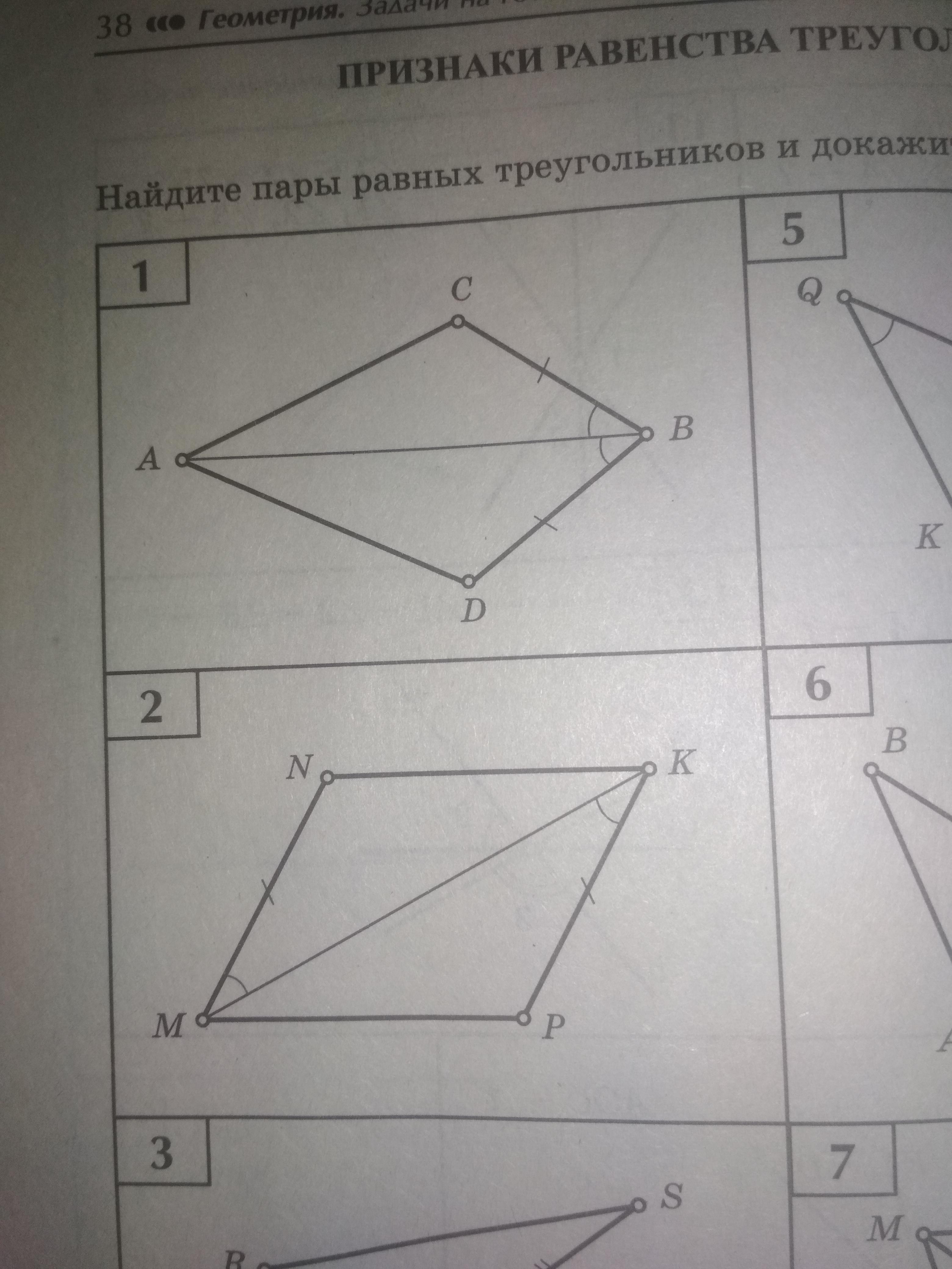 1) CBA=DBA; CB=DB по условию. AB- общая сторона .