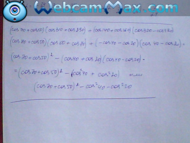 (cos70°+cos50°)(cos310°+cos290°)+(cos140°+cos160°)(cos320°-cos380°)