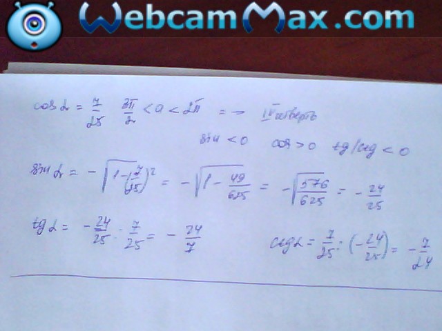 2. Известно, что cos a=7/25 , 3П/2<a<2П.