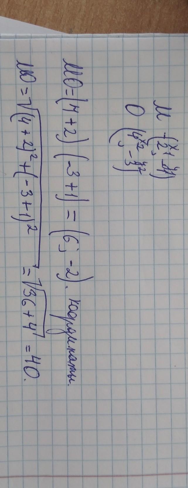 Найдите координаты вектора мо если м(-2;-1) о(4;3) найдите длину вектора мо.