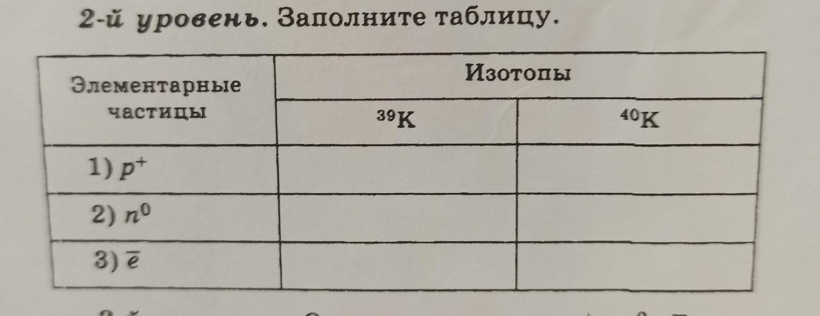 2-й уровень. Заполните таблицу. Изотопы 39к 40к
