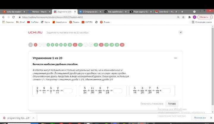 чтобы найти ответ нужно сначала найти общий знаменатель всех чисел и только потом складывать