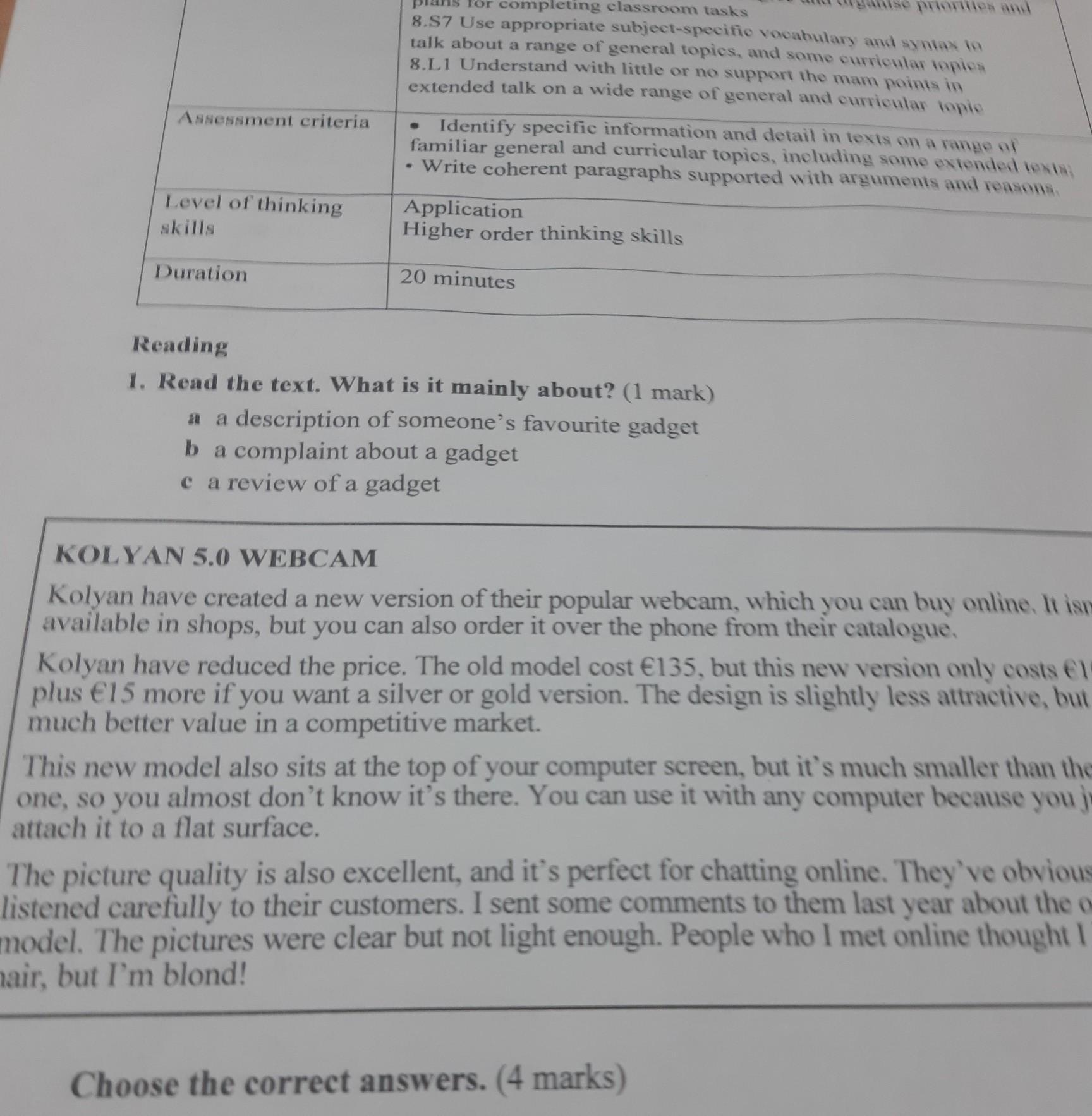 1. Read the text. What is it mainly about? (1 mark) a a description of someone's favourite gadget b a complaint about a gadget c a review of a gadget
