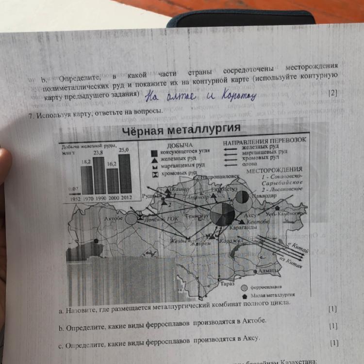 а. Назовите, где размещается металлургический комбинат полного цикла.