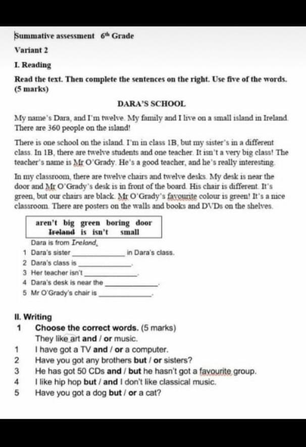 1. Dara’s sister isn’t in Dara’s class.