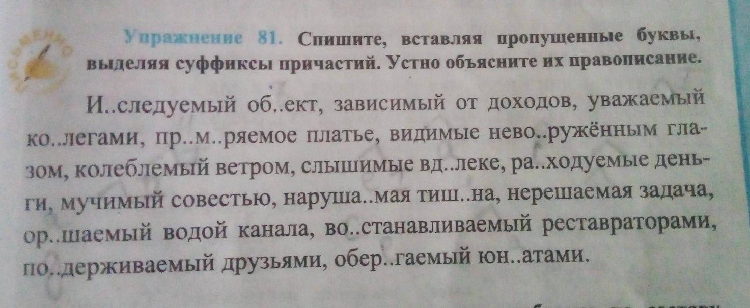 Спишите вставляя пропущенные буквы Выделите суффиксы причастий устно объясните их правописание.