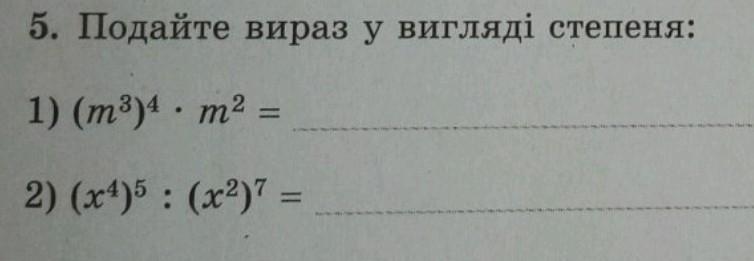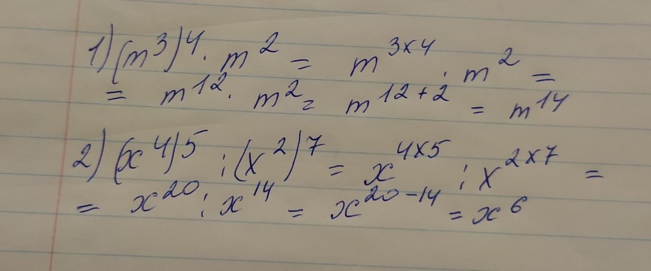 2) (x^4)^5 : (x²)^7=x^20 : x^14=x^(20-14)=m^6