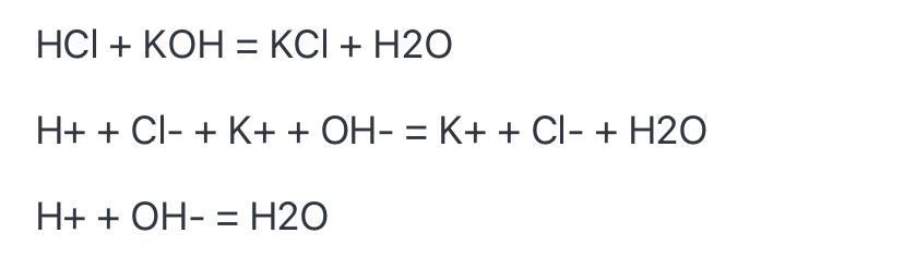 H+ + Cl- + K+ + OH- = K+ + Cl- + H2O