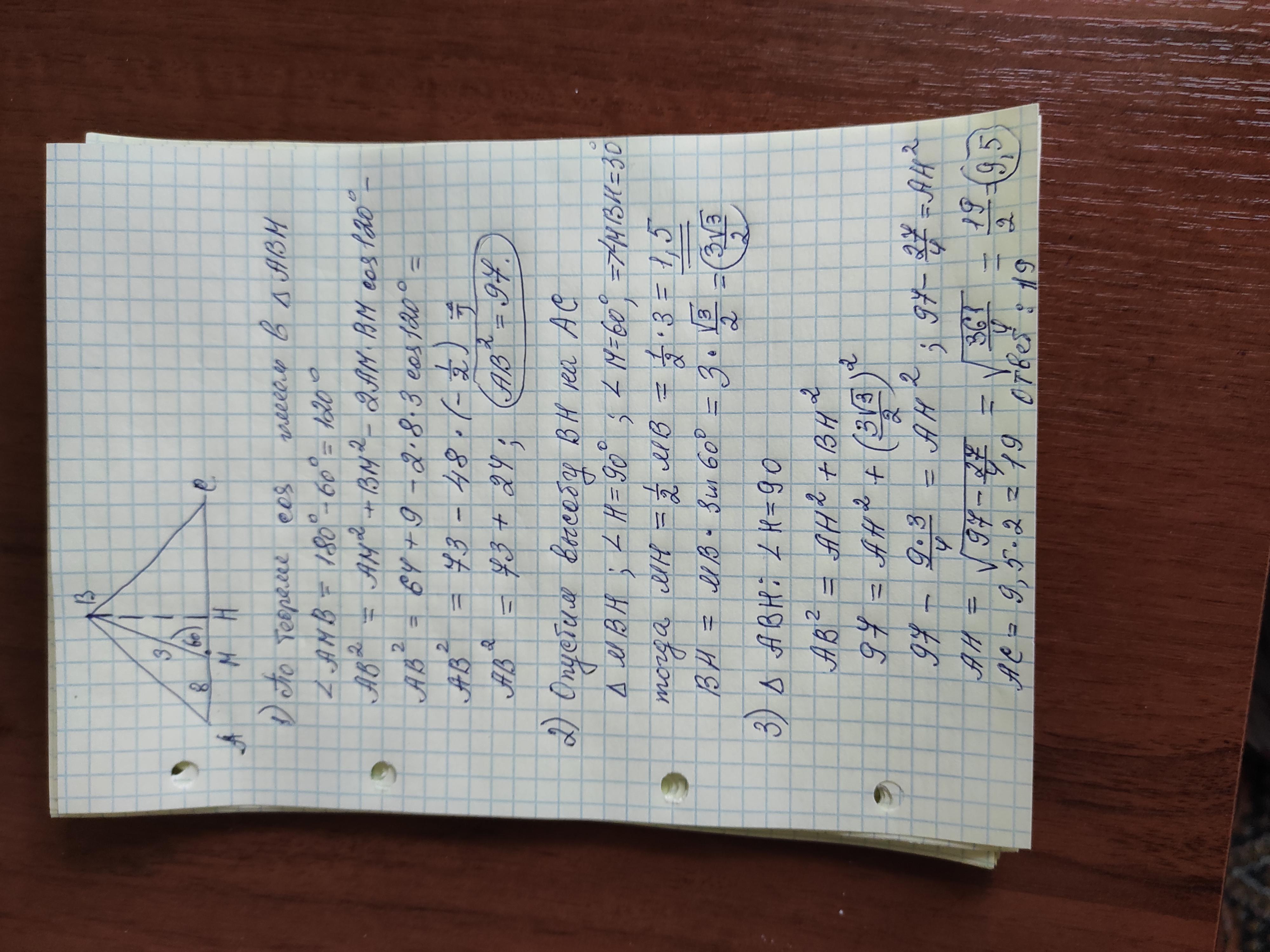 На основании A C равнобедренного треугольника A B C (= A B = B C ) отмечена точка M . Известно, что =8 A M = 8 , =3 M B = 3 , ∠=60∘ ∠ B M C = 60 ∘ . Найдите длину отрезка A C .