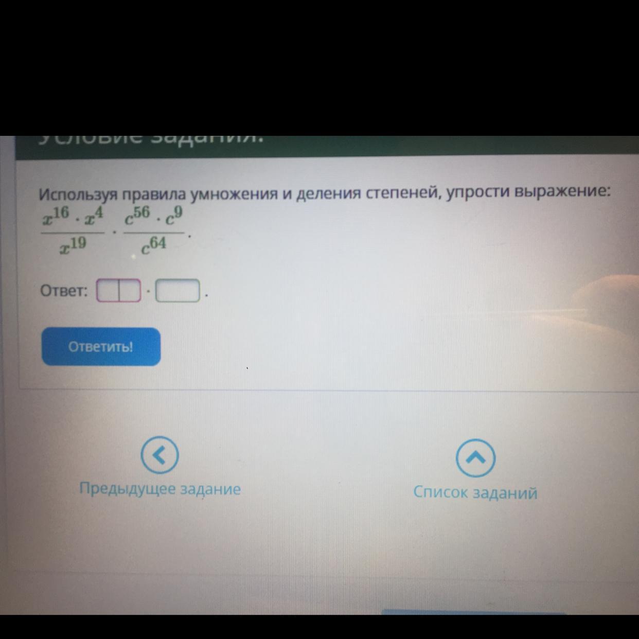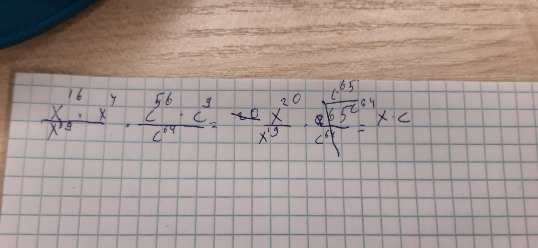 выходит х²⁰/х¹⁹×с⁶⁵/с⁶⁴=х×с