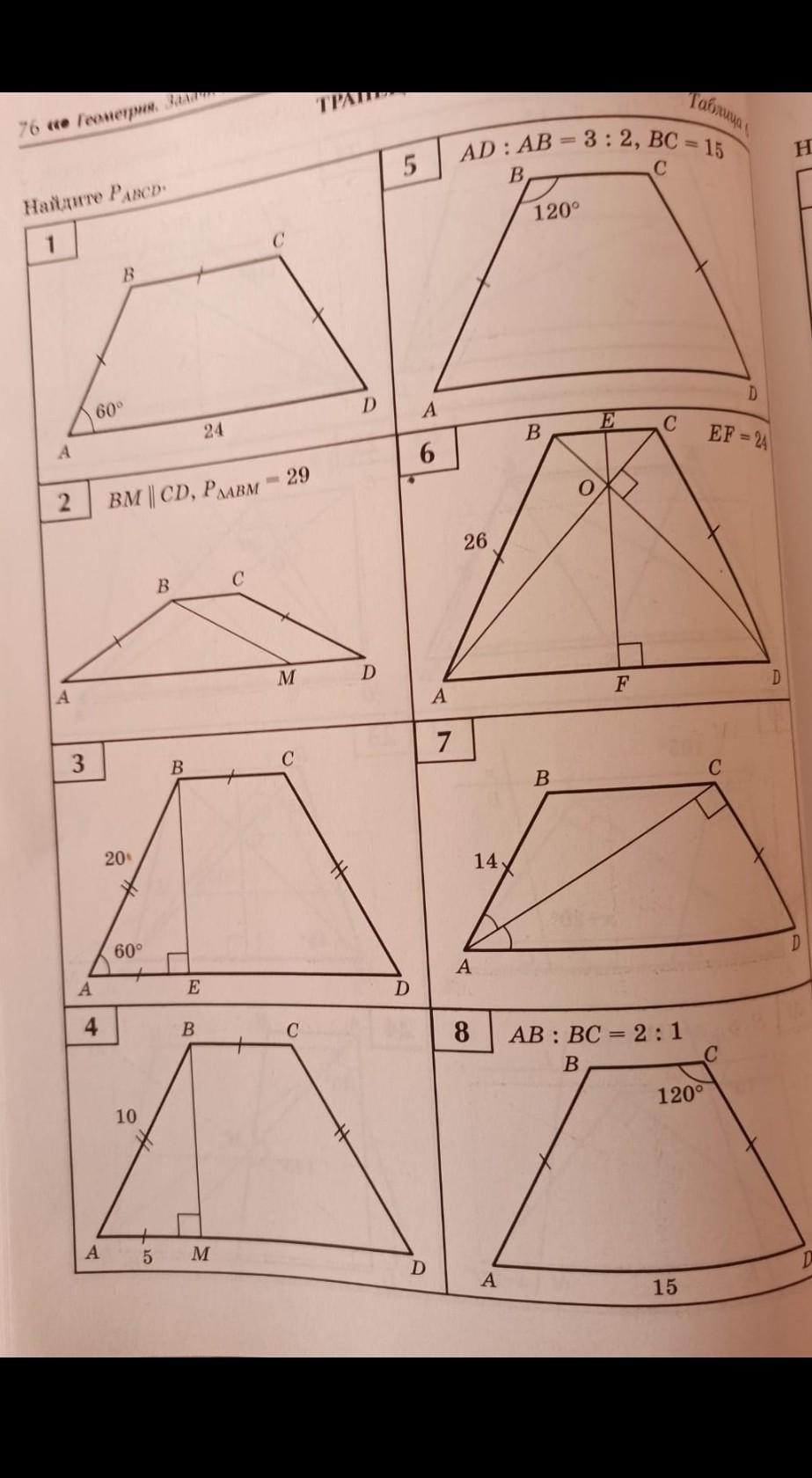 1) проводим перпендикуляр BE из точки B на сторону AD. Поскольку угол А равен 60°, то угол B будет равен 30°. Согласно теореме, отрезок АЕ будет равен половине отрезка AB=половине отрезка ВС. Тогда обозначим отрезок AE как x. Из этого следует, что периметр трапеции будет равен х+2х+2х+2х+х+2х=10х. Тогда отрезок AC будет равен 4х. Вычисляем x (24÷4=6), и тогда периметр будет равен 60.