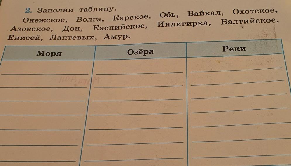 моря:карское онежское Байкал охотское азовское каспийское балтийское лаптевых