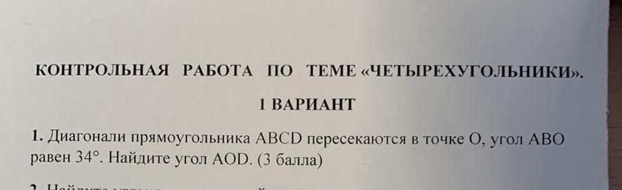 Угол АВО = 180 - 2 • 34 = 112°