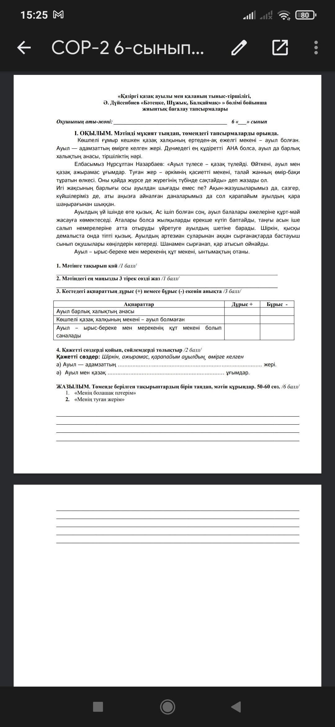 2.Ауыл,ынтымақтың орны,туған жер