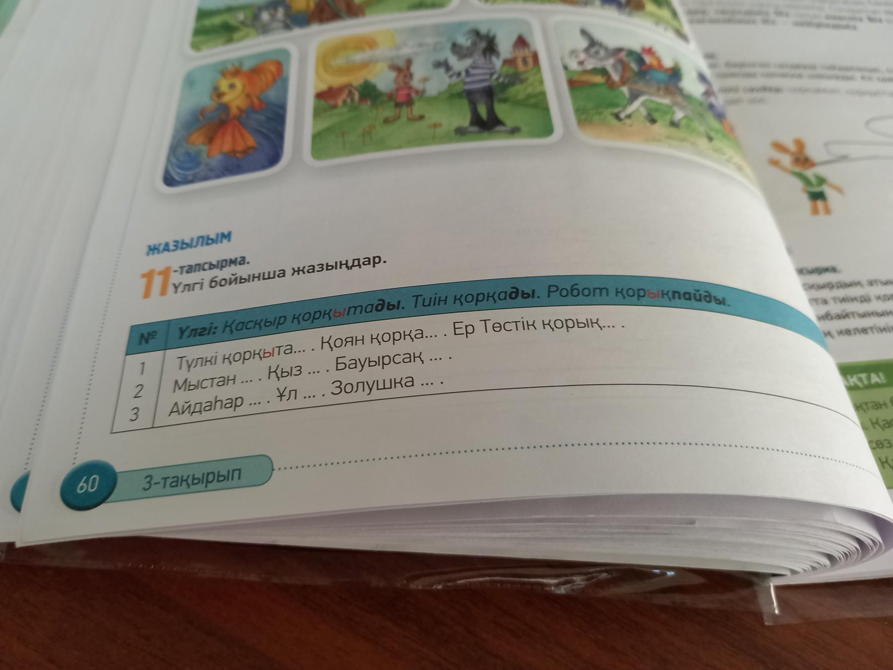 Түлкі қорқытады, қоян қорқады,ер төстік қорықпайды,мытсан қорқытады,қыз қорқады,бауырсақ қорқады,айдаһар қорқытады,ұл қорықпайды,золушка қорқады