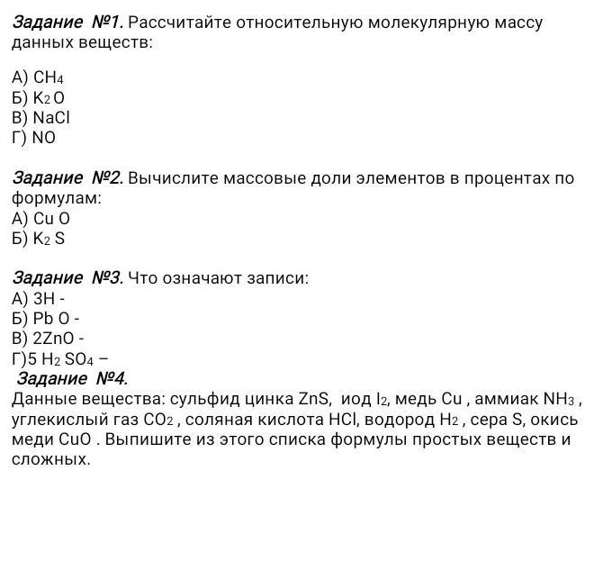 Сложные: ZnS,NH3,CO2,HCI,CuO.
