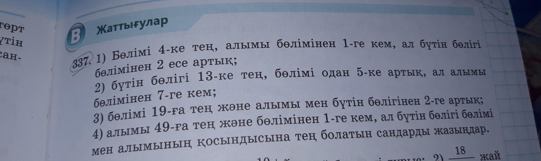 337. 1) Деление равно 4, комиссия меньше 1 раздела, а вся часть в 2 раза больше раздела; смертная часть равна 13, часть больше 5, а гонорар меньше 7;