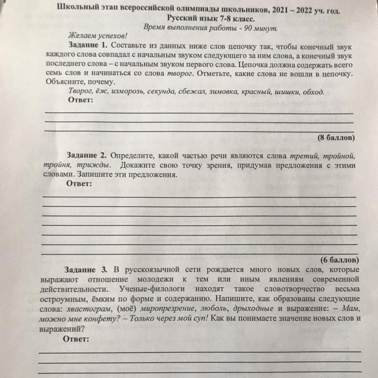 Составьте из данных ниже слов цепочку так,чтобы конечный звук каждого слова совпадал…