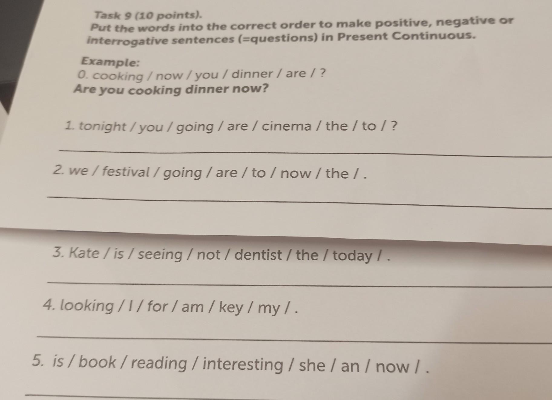 Ответ: 1) are you going to the cinema tonight?