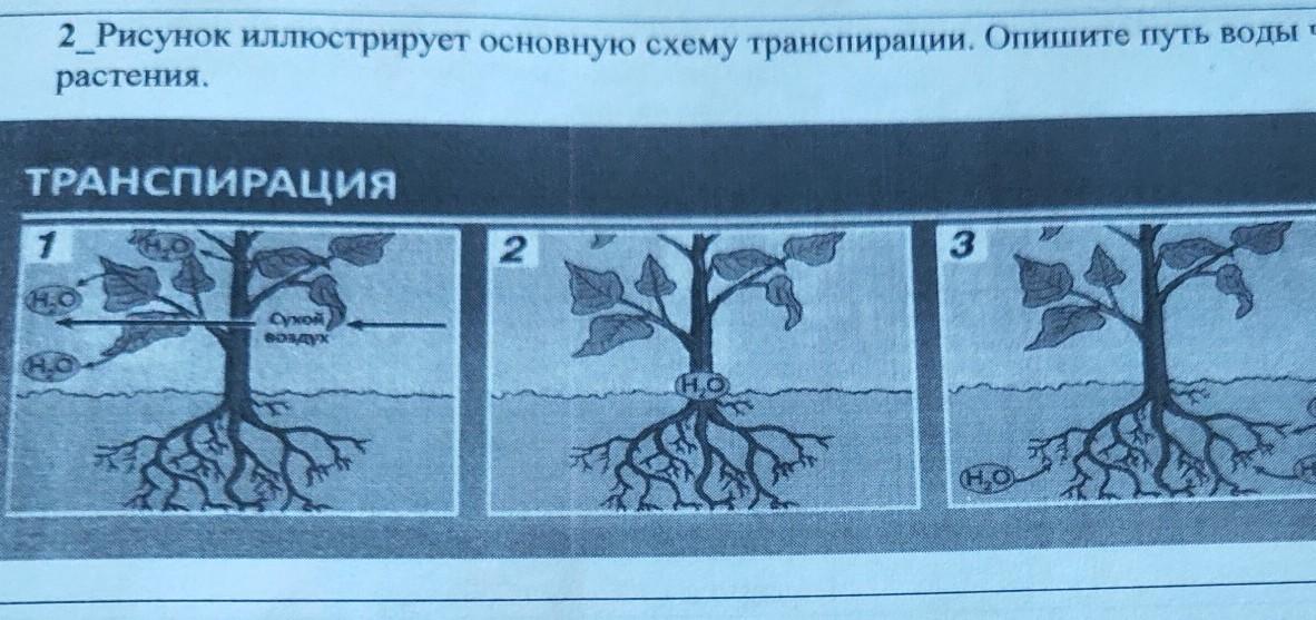 Рисунок иллюстрирует основную схему транспирации. опишите путь воды через органы растения