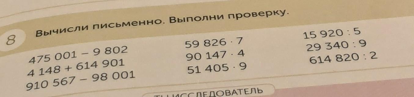 Вычисли письменно Выполни проверку
