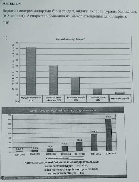 Берілген диаграммалардың бірін тандап, ондағы ақпарат туралы баяндаңыз. (6-8 сөйлем). Ақпараттар бойынша өз ой-қорытындыңызды білдіріңіз.