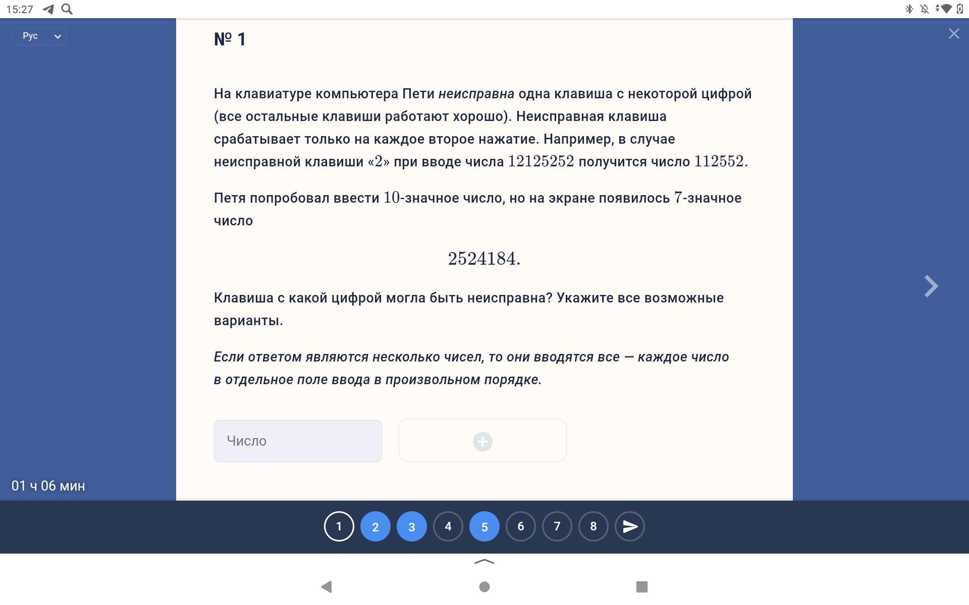 Клавиша с какой цифрой могла быть неисправна? Укажите все возможные варианты.