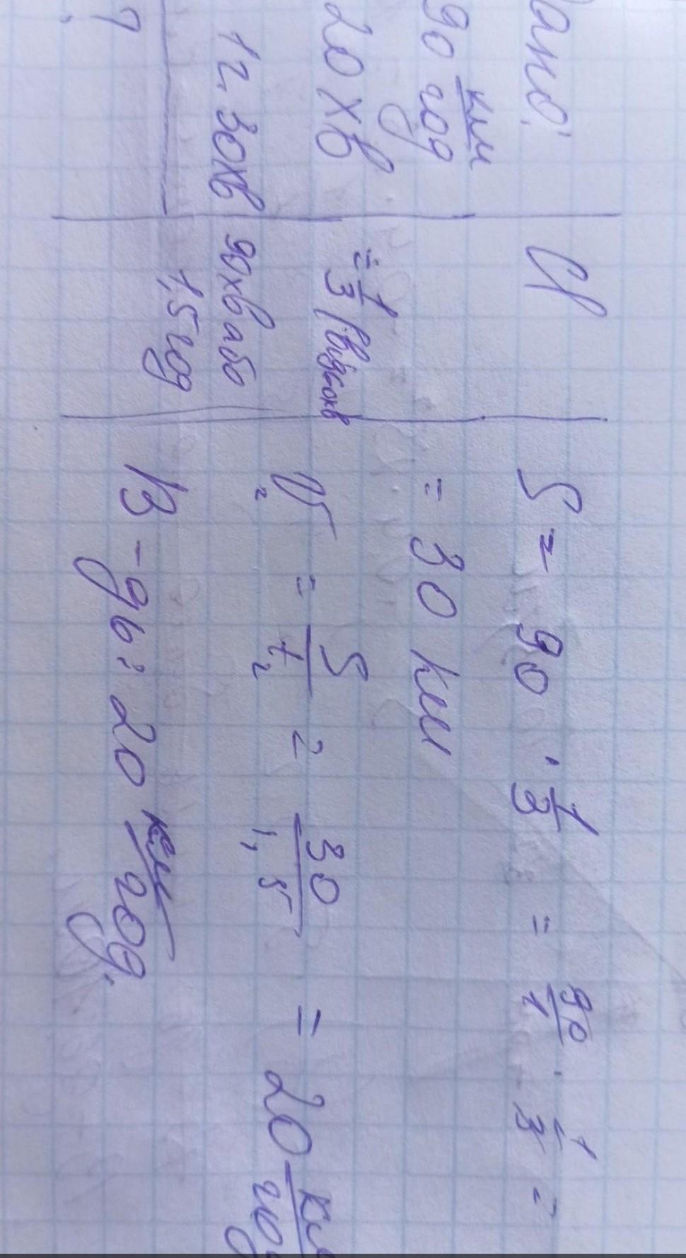 автобус їдучи зі швидкістю 90км/год від перемістя до міста дістався за 20 хв. з якою швидкістю має їхати на велосипеді мешканець перемістя, щоб дістатися до міста за 1 год 30 хв