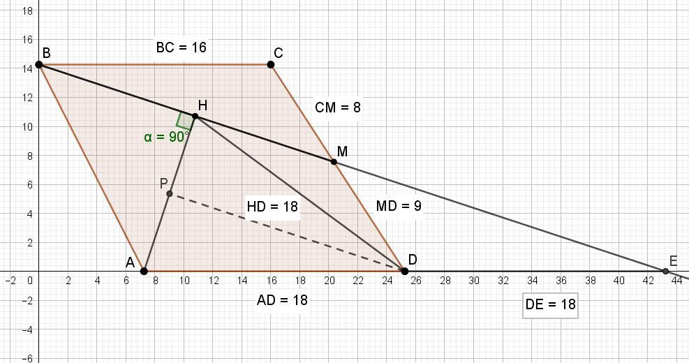 Отрезок DP параллелен НЕ, а АН делится пополам.