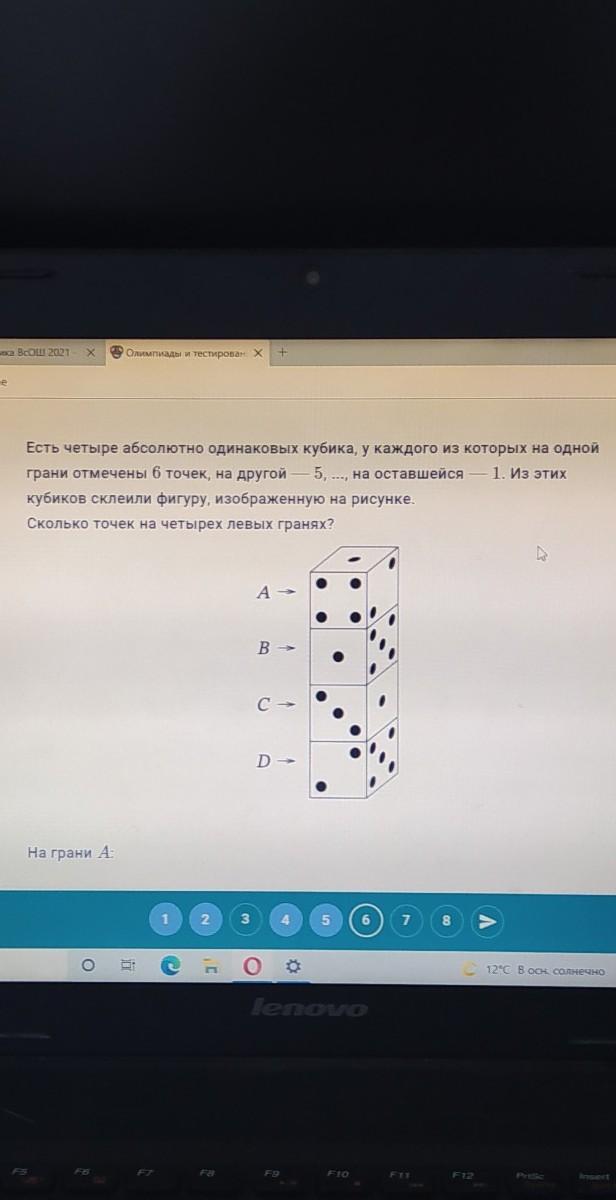 грани отмечены в точек, на другой — 5, ..., на оставшейся — 1. Из этих