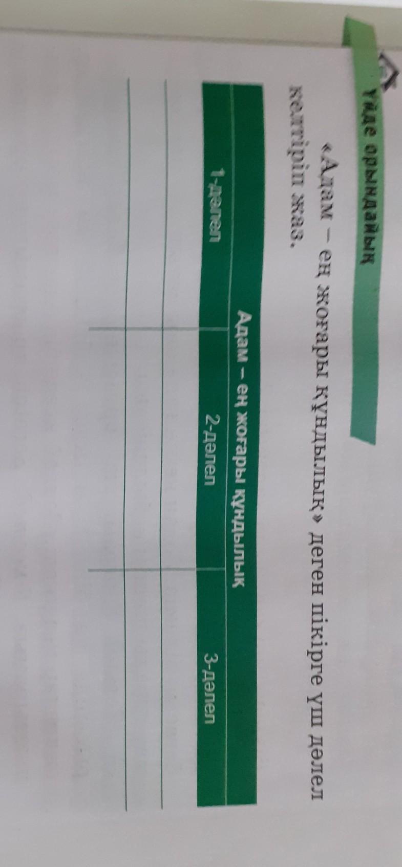 «Адам — ең жоғары құндылық» деген пікірге үш дәлел келтіріп жаз. Адам – ең жоғары құндылық 2-дәлел 1-дәлел 3-дәлел