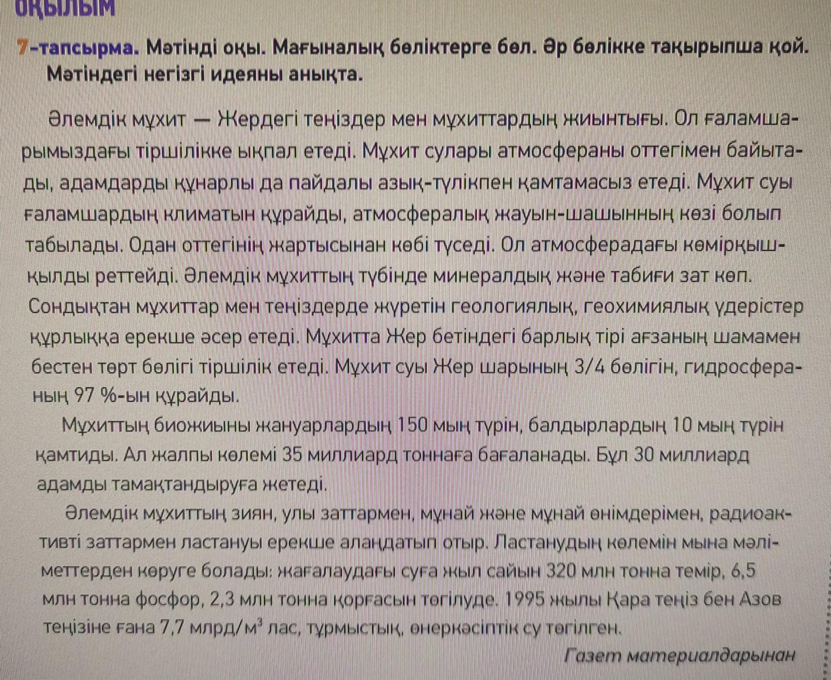 идея:Мұхиттың тіршілік иелеріне пайдасы өте зор