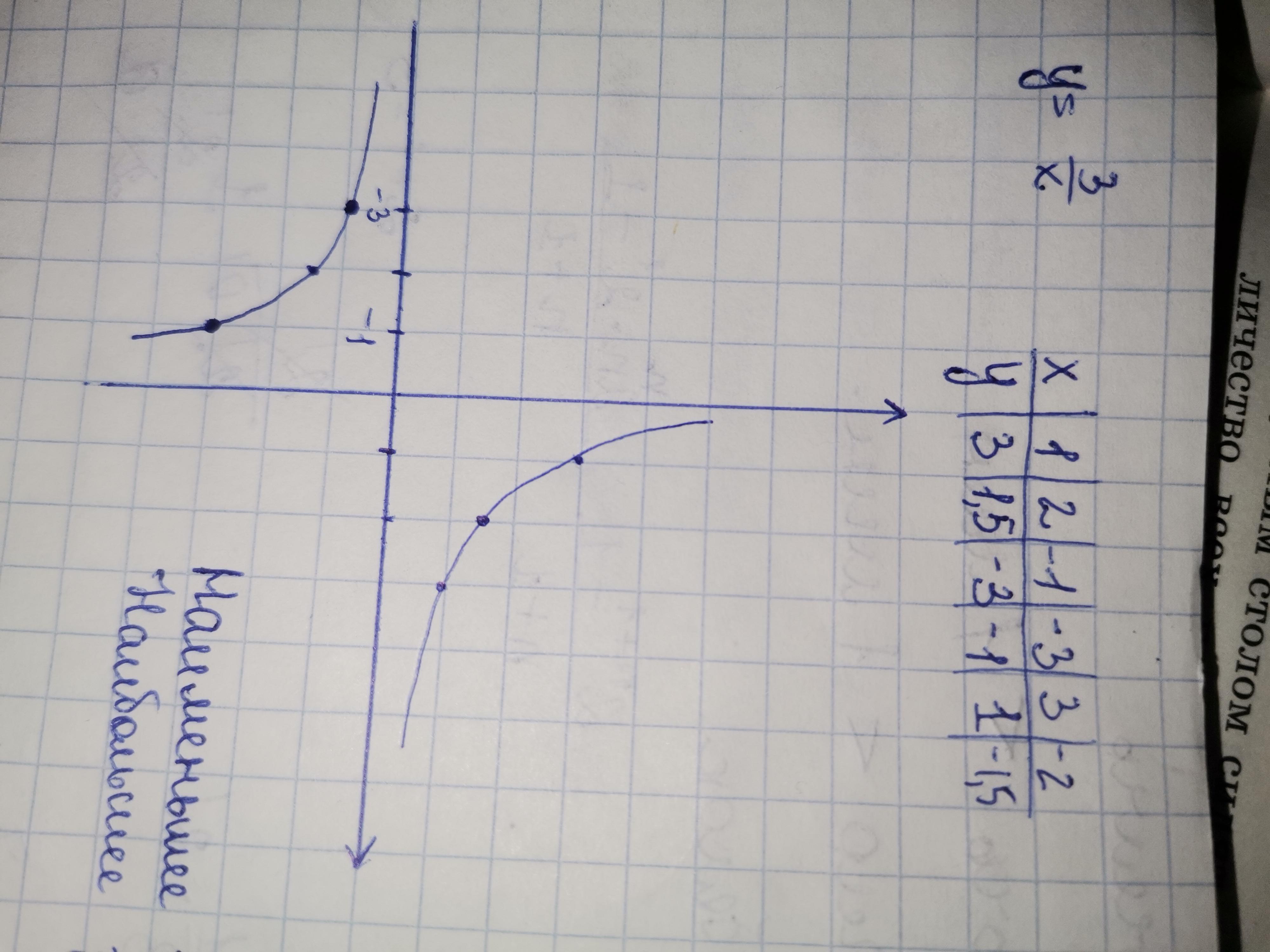 Построить график функции y=3/x .С помощью графика найти наибольшее и наименьшее значение функции на отрезке [-3;-1]