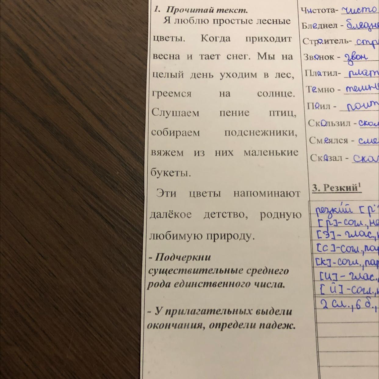 Подчеркни существительные среднего рода единственного числа у прилагательных выдели окончания определи падеж