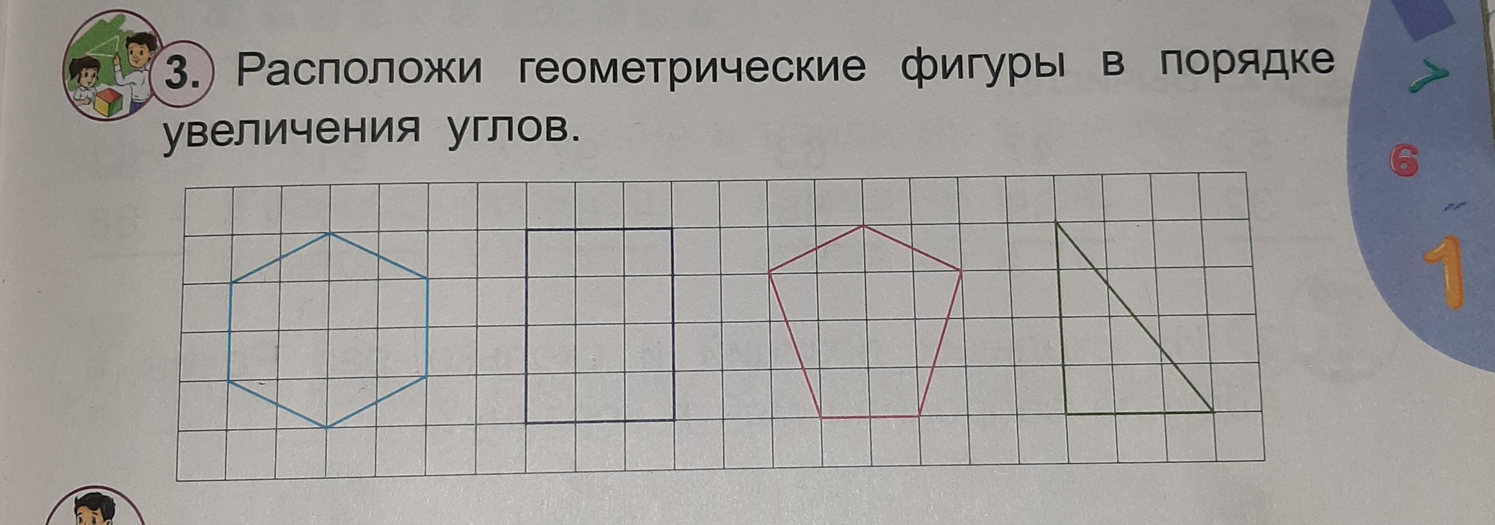 от фигуры с меньшим количеством углов,до фигуры с большим количеством углов