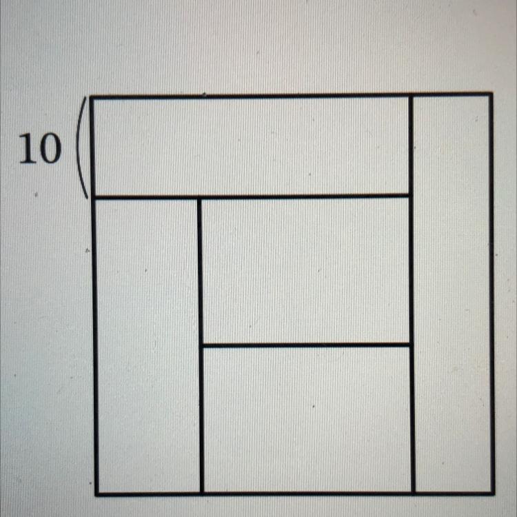 квадрат разделили на пять прямоугольников равной площади, как на рисунке. ширина одного из прямоугольников равна 10. найдите площадь квадрата