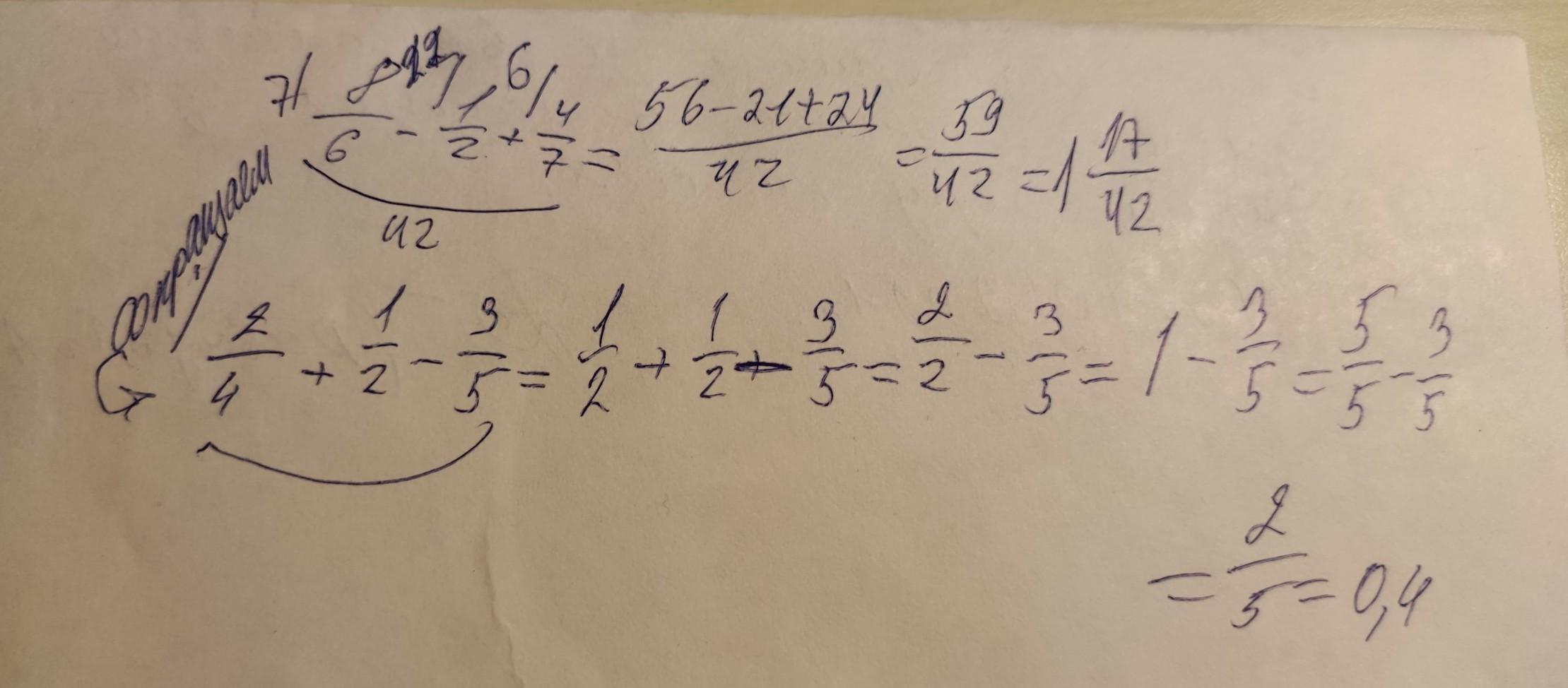 2. Два четвёртых плюс одна вторых минус три пятой=?