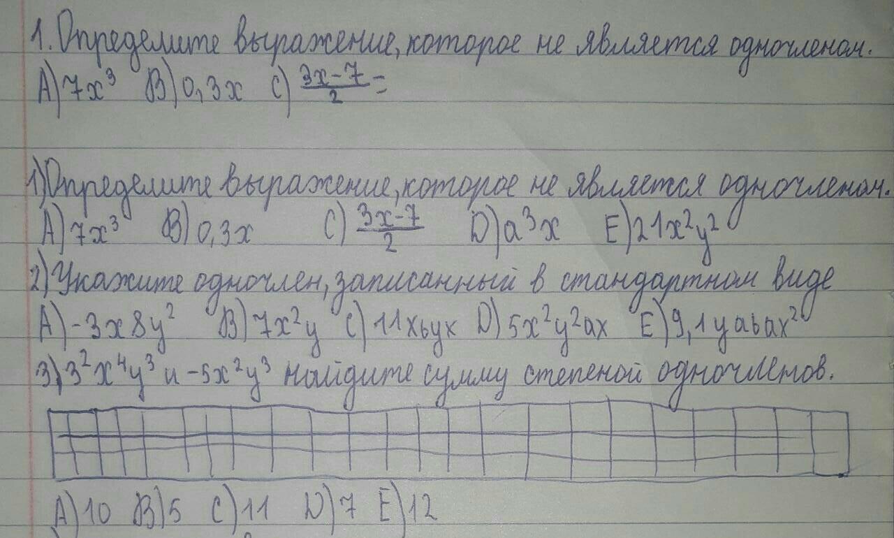1) Одночленом называется выражение, которое содержит числа, натуральные степени переменных и их произведения, и при этом не содержит никаких других действий с этими числами и переменными.
