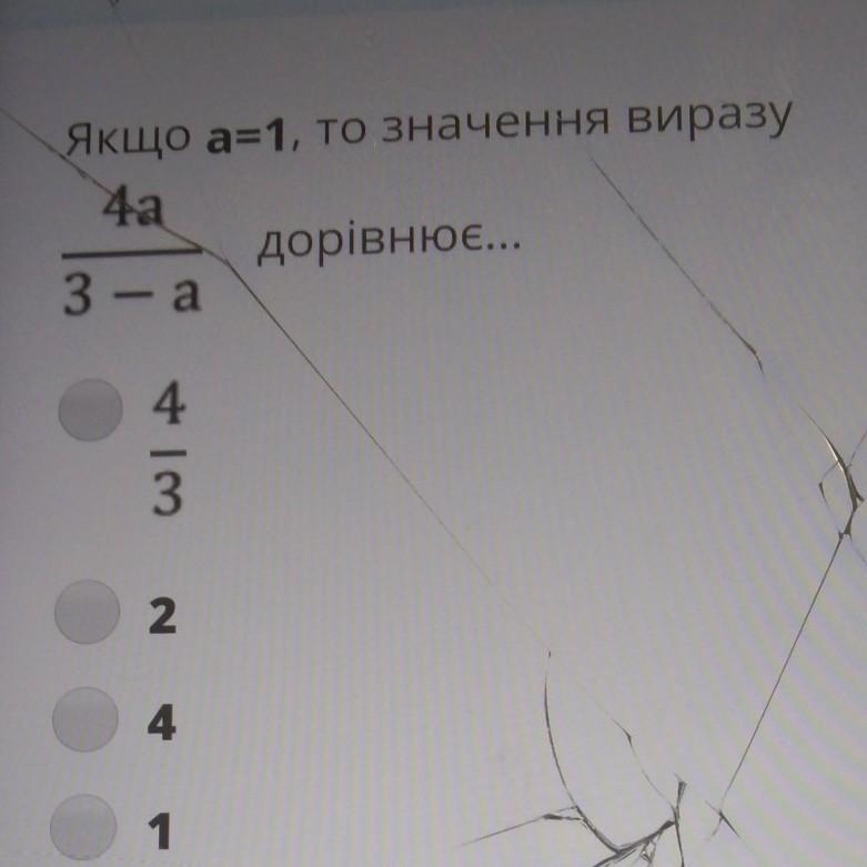 Ответ:Якщо а=1, то 4а/3-а= 4×1/3-1=4/2=2