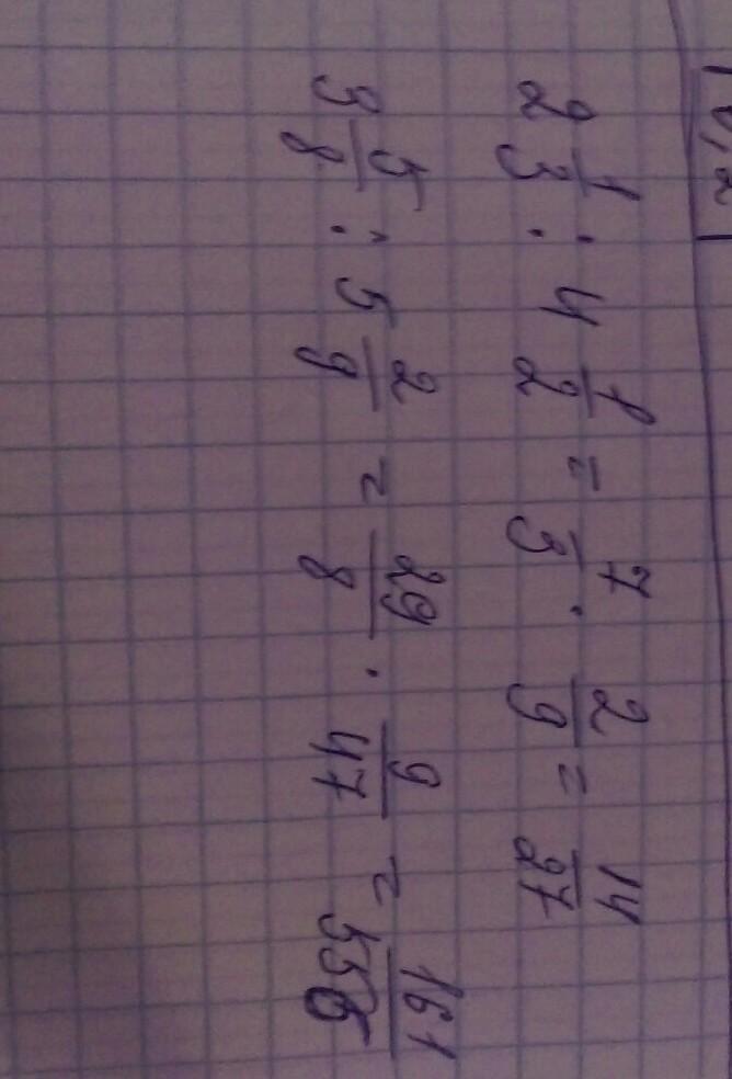 2 1/3 : 4 1/2 = 7/3 : 9/2= 7/3 * 2/9=14/27