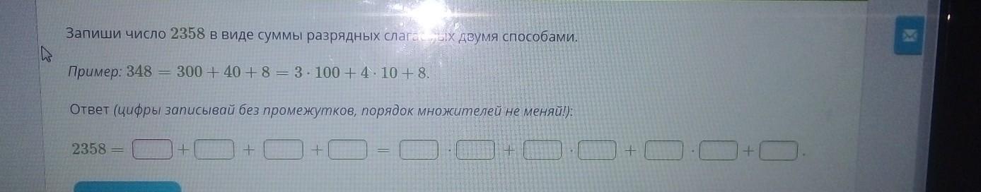 2358=2000+300+50+8=2×1000+3×100+5×10+8