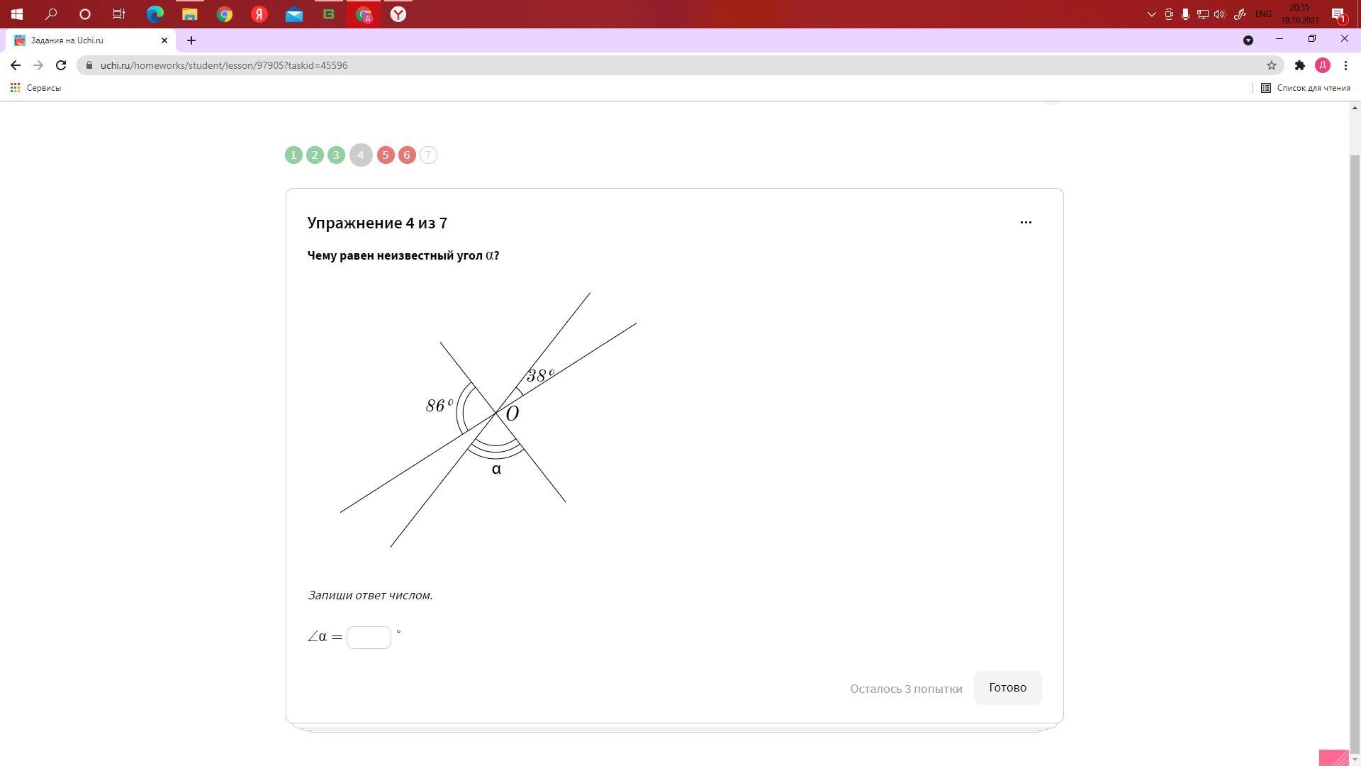 1) 180°- (86°+38°)= 180°-124°=56° - вертикальный угл углу a