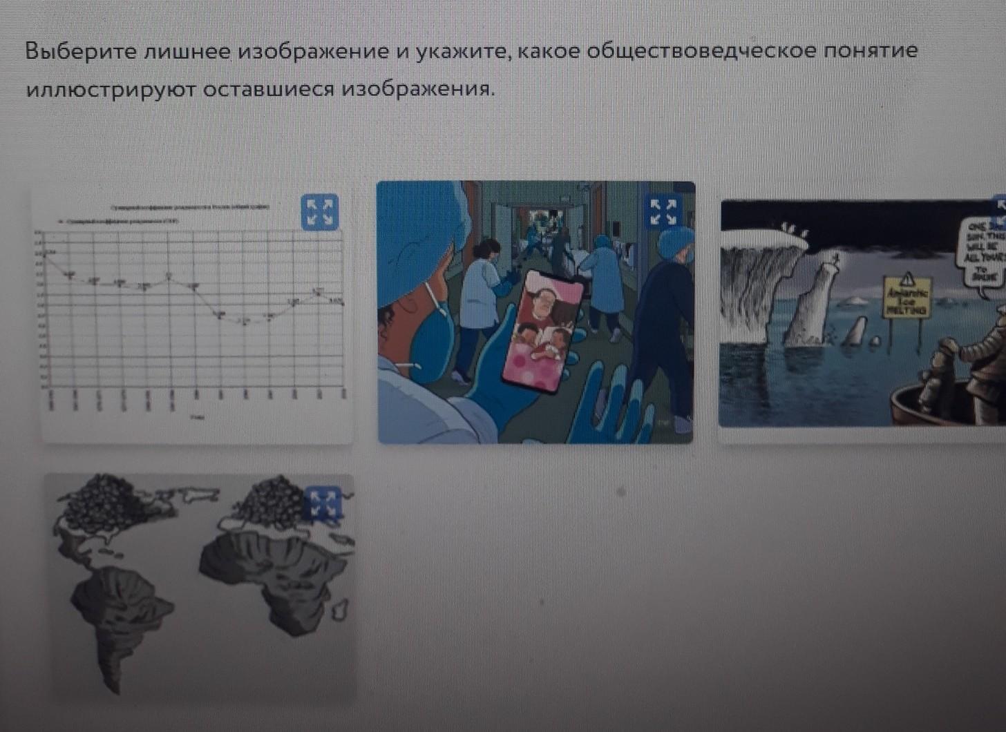 Выберите лишнее изображение и укажите, какое обществоведческое понятие иллюстрируют оставшиеся изображения.