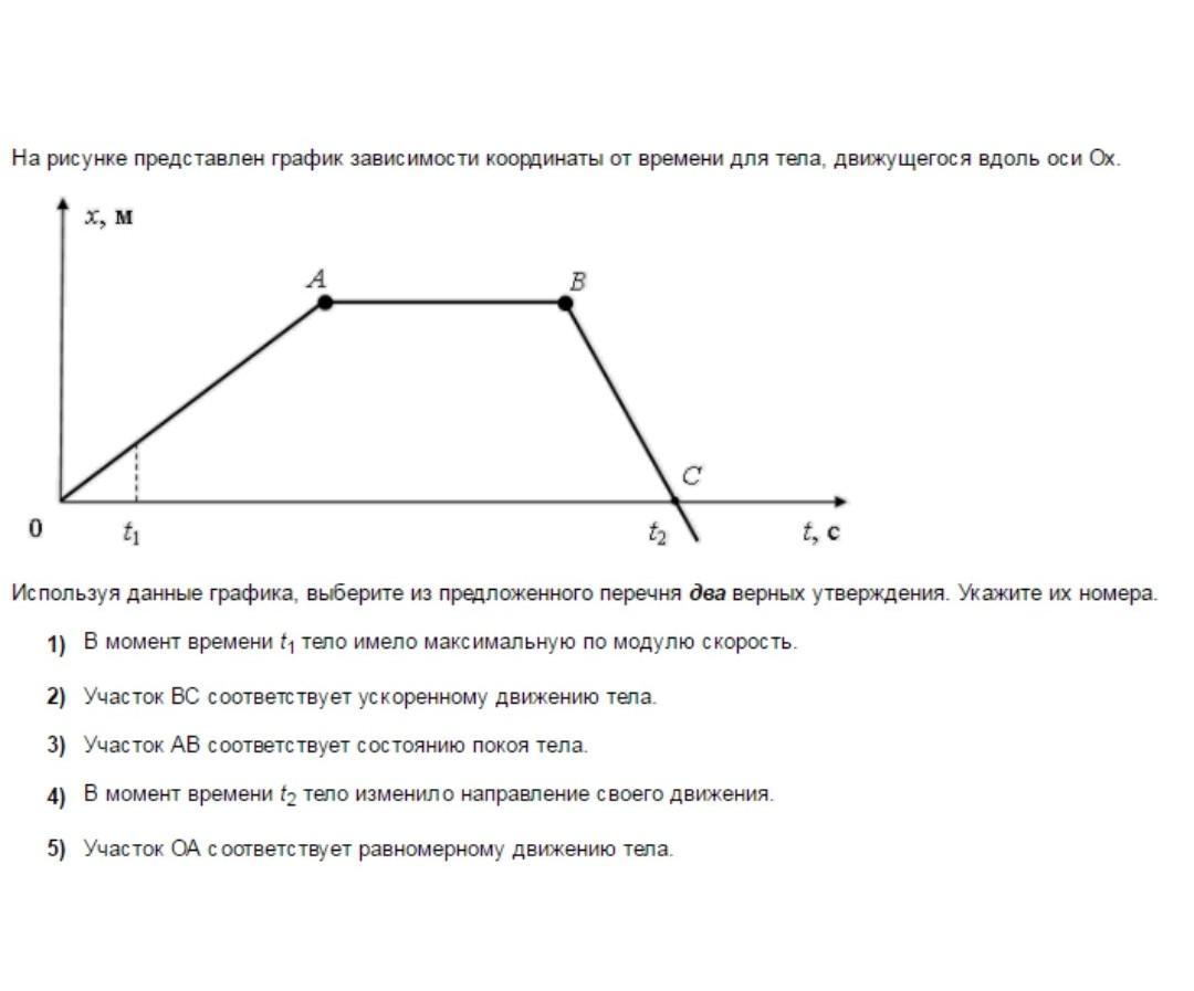 4) В момент времени t2 изменило направление своего движения - неверно, тело изменило свое направление движения еще в точке B, в момент t2 тело только прошло через начальную точку.