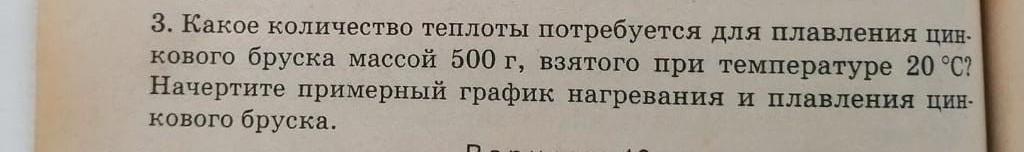 какое количество теплоты потребуется для плавления свинцового бруска массой 500г. Взятого при температуре 20 градусов. Начертите примерный график нагревания и плавления свинцового бруска.