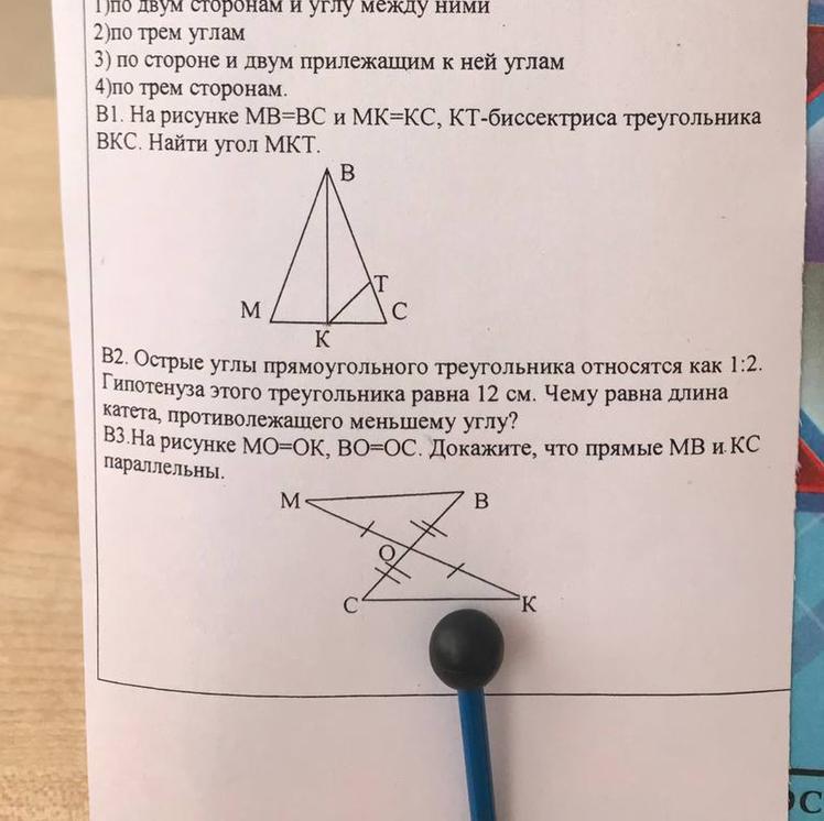 Треугольник МВС равнобедренный,т к по условию задачи МВ=ВС