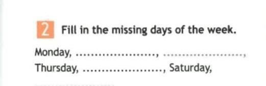 monday, tuesday, wendnesday,thursday friday, saturday ,sunday