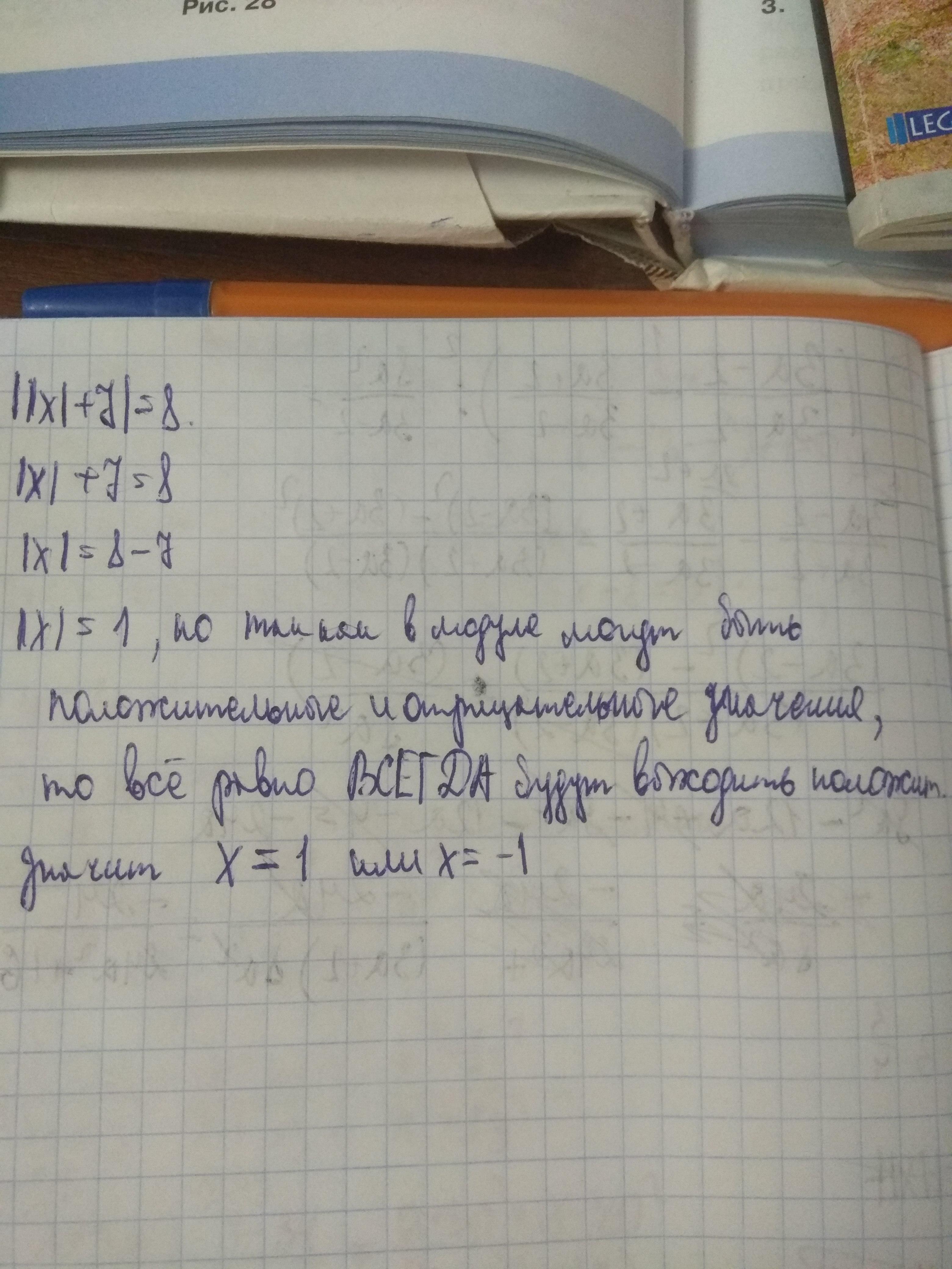 ||x|+7|=8 помогите пожалуйста !!!! (пожалуйста с объяснением!!!)