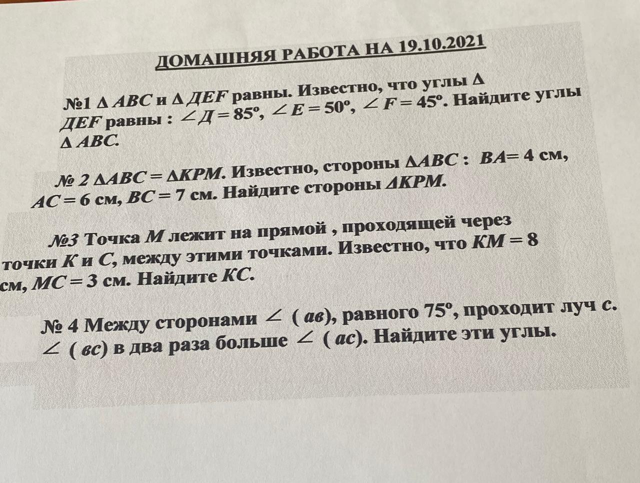 ABC=KPM;BA=4см; AC=6см; BC=7см. Так как эти треугольники равны, то значит, что их стороны тоже. Таким образом, РК=4см; КМ=6см; РМ=7см.