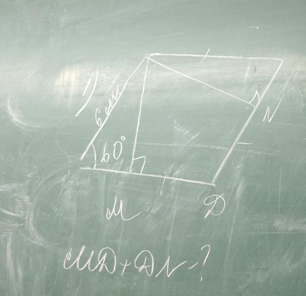 рассмотрим триугольники у них один угол 90 ,второй 60 ,а третий получается 30 ,поэтому катет противоположный углу 30 градусов равен половины гипотенузы ,вся фигура паралелограм поэтому противоположные стороны равны ,нам нужны вертикальные потом нижние стороны равные поэтому 6-3=3 это МД и ДН = 3, 3+3=6